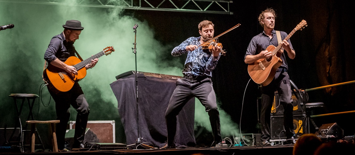Das charismatische Wiener Trio hat mit dem Programm „Strings on Fire!“ wieder ein musikalisches Feuerwerk der Extraklasse im Gepäck. Mit nur zwei Gitarren und einer Geige schafft es Cobario einen orchestralen Sound zu zaubern.